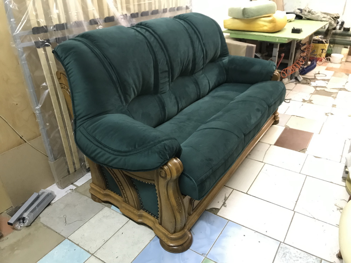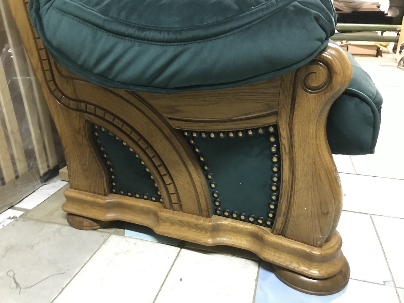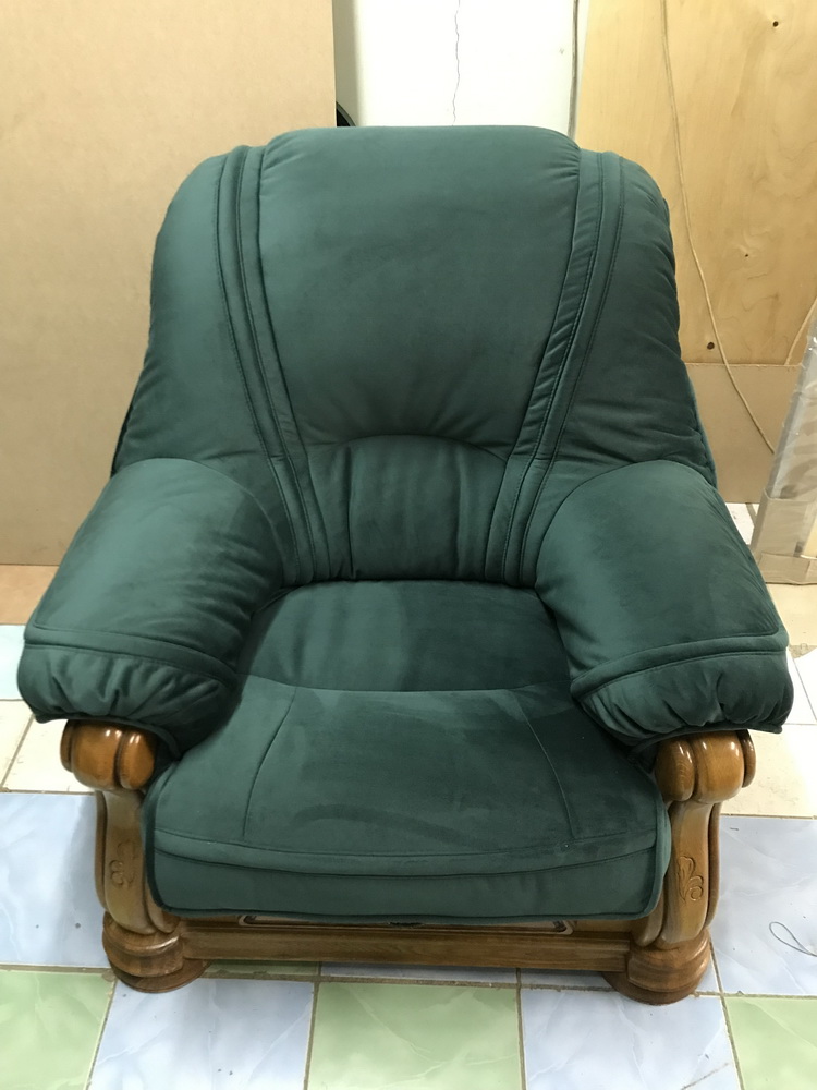 Перетяжка мягкой мебели на массиве. Заменили синтепон и декоративные гвозди. Полностью сшили новые чехлы из велюра, коллекция Venus Premium.
