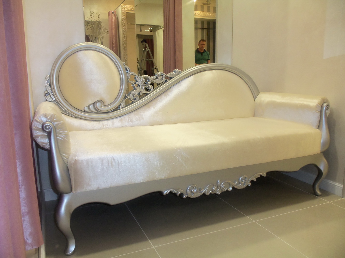 Перетяжка и замена поролона на диване-кушетке. Материал обивки - бархат.